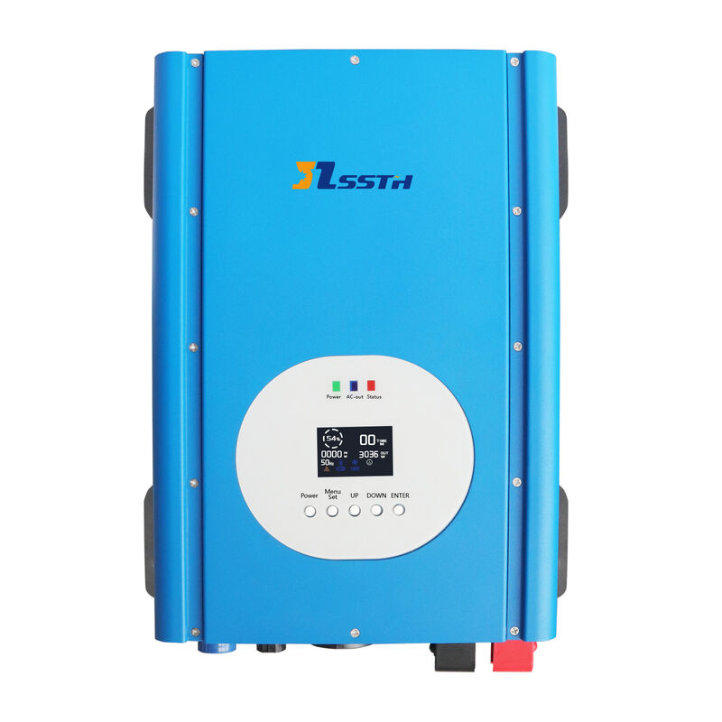 Panel kontrol 5 tombol dengan 17 parameter yang dapat disesuaikan (jenis baterai, tegangan/arus pengisian, frekuensi/tegangan output, dll.).